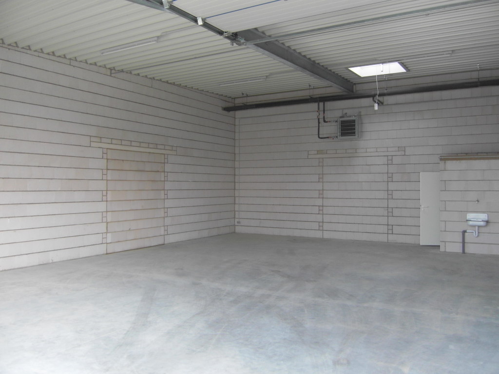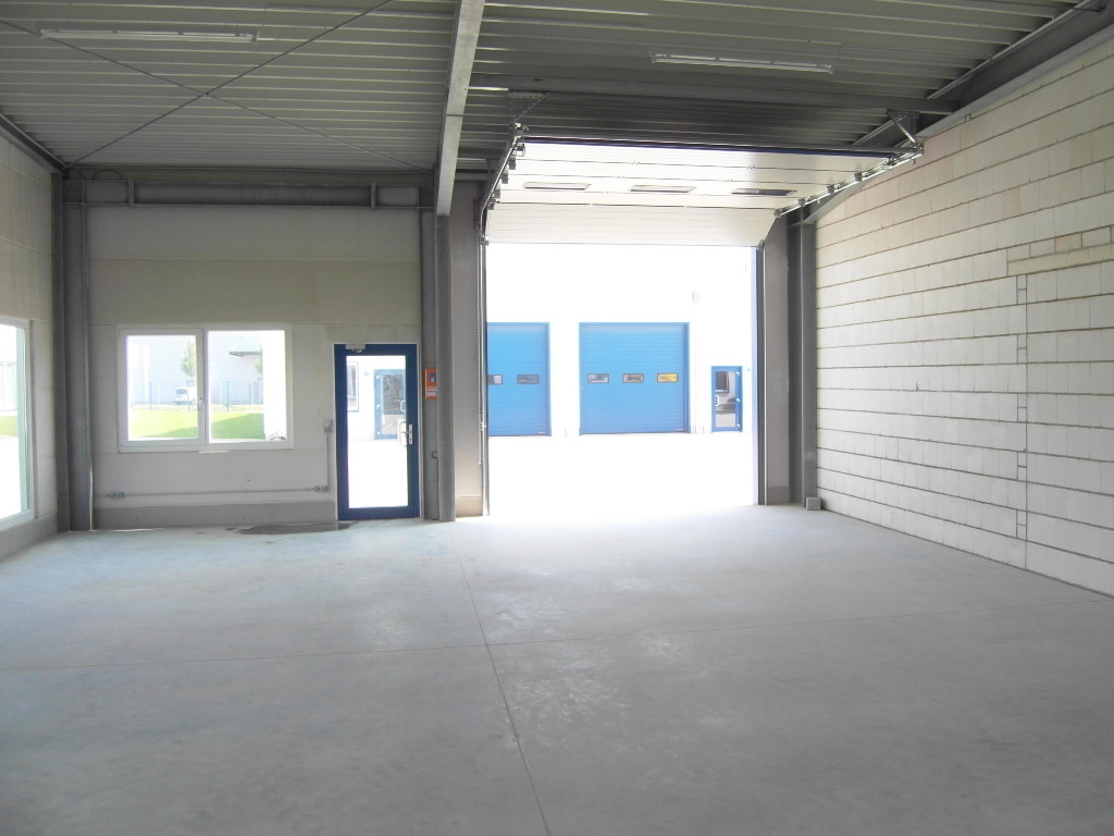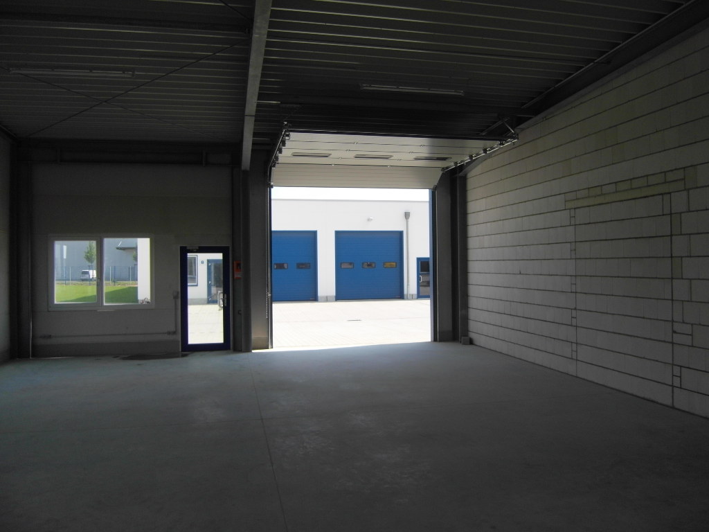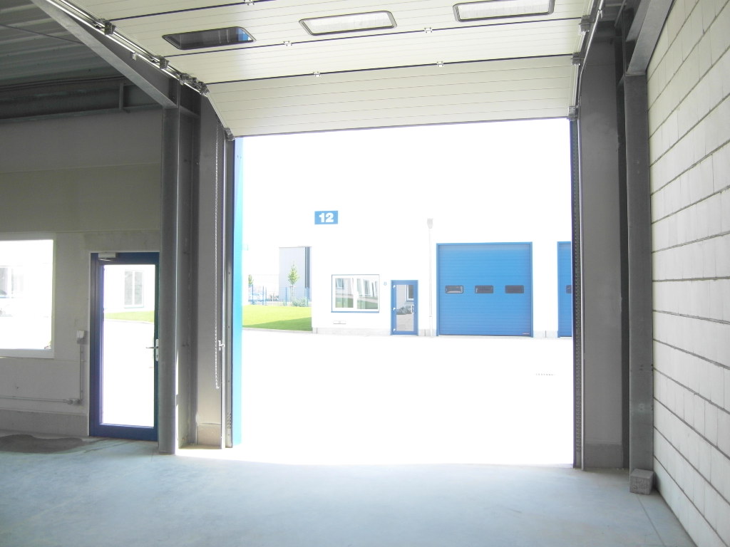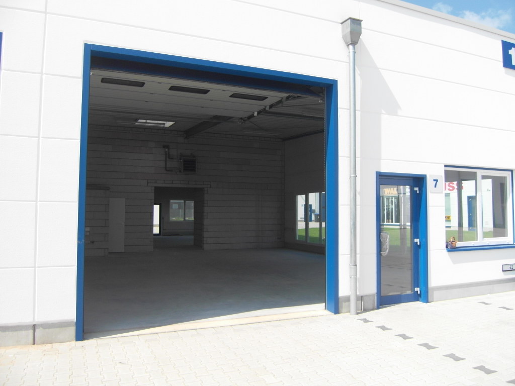 - Je 100 qm Halle 1 Sektionaltor mit 3 Sichtfenstern, Größe 3,5 x 3,5 m, Antrieb mech. über Haspelkette (optional mit elektrischem Öffner), 1 Alu-Zugangstür, 1 x 2 m, mit Glasfüllung, 1 Fensteranlage 2,0 x 1,5 m, Kopfhallen mit weiteren 2 Fensteranlagen je 4,0 x 2,1 m, im Dach ein Oberlicht ca. 1,2 x 1,2 m (optional mit elektrischem Öffner).